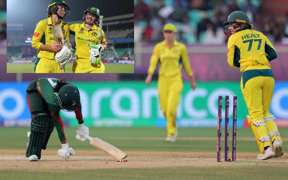 کرک اگین رپورٹ۔آسٹریلیا آئی سی سی ویمنز ورلڈکپ سیمی فائنل میں پہنچ گیا،کرکٹ کی تازہ ترین خبریں یہ ہیں کہ آسٹریلیا ویمنز کی کپتان ایلیسا ہیلی نے مسلسل دوسری سنچری اسکور کی جس کے نتیجے میں آسٹریلیا نے بنگلہ دیش کو 10 وکٹوں سے شکست دے کر ورلڈ کپ کے سیمی فائنل میں جگہ پکی کرلی۔ہیلی نے فوبی لیچ فیلڈ کے ساتھ 202 کی ناقابل شکست افتتاحی شراکت میں 113 رنز بنائے کیونکہ دفاعی چیمپئن نے وشاکھاپٹنم میں 25 اوورز کے اندر اپنا ہدف حاصل کر لیا۔لیچ فیلڈ نے 72 گیندوں پر 84 رنز بنائے۔ہیلی نے اتوار کو اس گراؤنڈ پر بھارت کے خلاف آسٹریلیا کے ریکارڈ کا تعاقب کرتے ہوئے اپنے شاندار 142 رنز بنائے۔آسٹریلیا نے 199 رنز کے تعاقب میں جوڑی نے 33 باؤنڈریز لگائے۔
