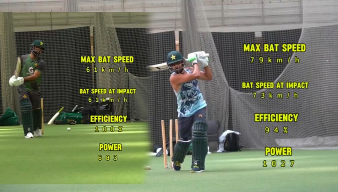 بابراعظم کی باری آئی تو پہلی ہی گیند ان کے بیٹ کی موومنٹ اسپیڈ 89 کلومیٹر فی گھنٹہ اور پاور 1027 تھی۔ فخر زمان کے بیٹنگ کی سوِئنگ 74 کلومیٹر فی گھنٹہ دکھائی دیا اور انکی پاور موومنٹ 761 رہییہ مقابلہ بابر نے جیت لیا۔