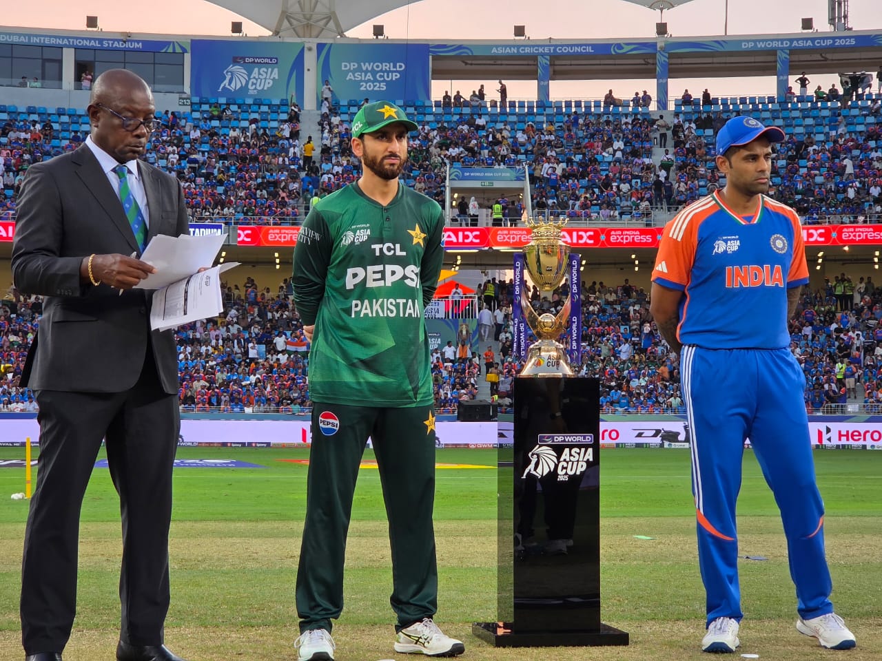 دبئی انٹرنیشنل کرکٹ سٹیڈیم میں پاکستان بھارت فائنل کے ٹاس سے ذرا قبل یہ فوٹو سیشن ہوا۔بھارت نے بائیکاٹ کیا۔سرد مہری تھی۔سلمان علی آغا نے اکیلے ہی ٹرافی کے ساتھ تصویر بنوائی۔